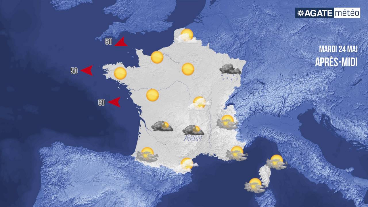 Retrouvez la météo du mardi 24 mai 2016.