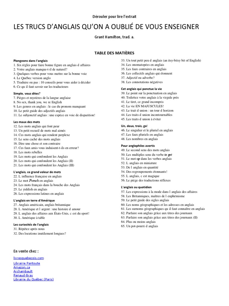 A l'école, l'apprentissage de l'anglais commence en ce1. There should be a constant budget for this because honesty does not cost a penny, just a little political effort. Nous pensions lui donner comme nom :